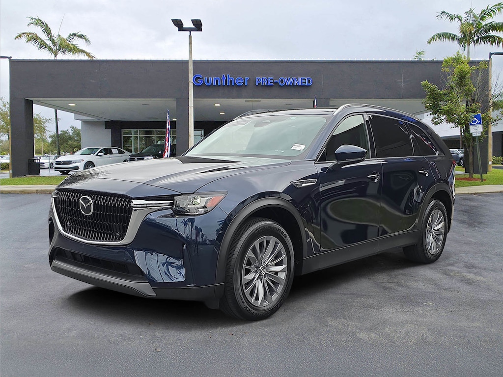 Only 7,752 Miles! Scores 28 Highway MPG and 24 City MPG! Dealer Certified Pre-Owned. This Mazda CX-90 boasts a Intercooled Turbo Gas/Electric I-6 3.3 L/200 engine powering this Automatic transmission. DEEP CRYSTAL BLUE MICA, BLACK, LEATHER SEAT TRIM, 2ND-ROW CAPTAIN'S CHAIRS -inc: Reduces seating capacity from 8-passengers to 7-passengers, armrest and center walk through.
