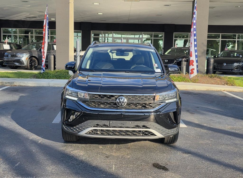 Certified. Deep Black 2023 Volkswagen Taos 1.5T SE AWD 7-Speed DSG Automatic with Tiptronic Clean CARFAX. CARFAX One-Owner. 1.5L I4 Turbocharged DOHC 16V LEV3-SULEV30 158hp Alloy wheels, Auto High-beam Headlights, Electronic Stability Control, Exterior Parking Camera Rear, Heated steering wheel, Illuminated entry, Power driver seat, Speed control, Traction control.