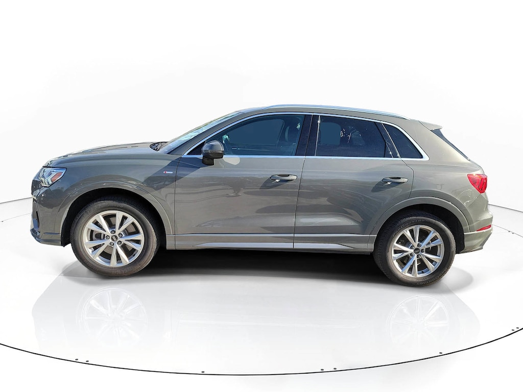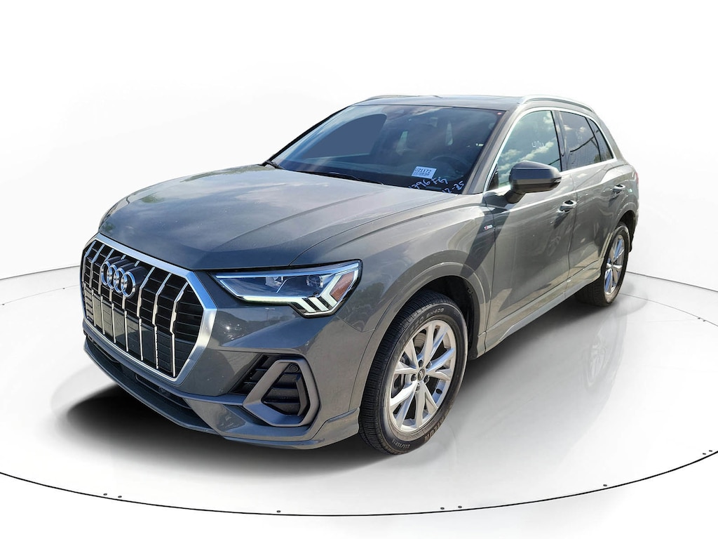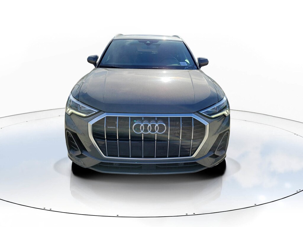 CARFAX One-Owner. Gray 2024 Audi Q3 Premium S Line quattro 2.0L 4-Cylinder TFSI 8-Speed Automatic with Tiptronic quattro 10 Speakers, 3.53 Axle Ratio, 4-Wheel Disc Brakes, ABS brakes, Air Conditioning, Alloy wheels, AM/FM radio, Audi smartphone interface (Apple CarPlay/Android Auto), Auto High-beam Headlights, Automatic temperature control, Brake assist, Bumpers: body-color, Delay-off headlights, Driver door bin, Driver vanity mirror, Dual front impact airbags, Dual front side impact airbags, Electronic Stability Control, Emergency communication system: Audi connect CARE, Exterior Parking Camera Rear, Four wheel independent suspension, Front anti-roll bar, Front Bucket Seats, Front Center Armrest, Front dual zone A/C, Front fog lights, Front reading lights, Fully automatic headlights, Heated door mirrors, Heated Front Bucket Seats, Heated front seats, Illuminated entry, Knee airbag, Leather Seating Surfaces, Leather Shift Knob, Leather steering wheel, Low tire pressure warning, Occupant sensing airbag, Outside temperature display, Overhead airbag, Overhead console, Panic alarm, Passenger door bin, Passenger vanity mirror, Power door mirrors, Power driver seat, Power Liftgate, Power moonroof: Panoramic, Power passenger seat, Power steering, Power windows, Radio data system, Radio: Audi Sound System, Rain sensing wipers, Rear air conditioning, Rear anti-roll bar, Rear fog lights, Rear reading lights, Rear seat center armrest, Rear window defroster, Rear window wiper, Remote keyless entry, Speed control, Speed-sensing steering, Split folding rear seat, Spoiler, Steering wheel mounted audio controls, Tachometer, Telescoping steering wheel, Tilt steering wheel, Traction control, Trip computer, Turn signal indicator mirrors, Variably intermittent wipers, and Wheels: 18" 5-V-Spoke-S Design.