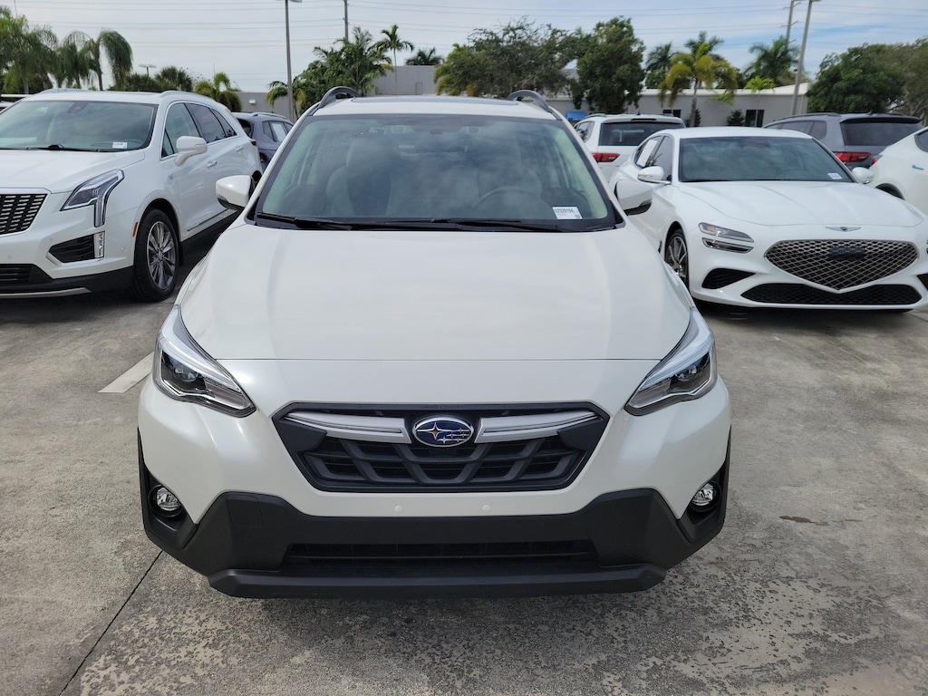 CARFAX One-Owner. Crystal White Pearl 2022 Subaru Crosstrek Limited 2.5L 4-Cylinder DOHC 16V Lineartronic CVT AWD Moonroof Package 1 (Power Moonroof), 3.70 Axle Ratio, 4-Wheel Disc Brakes, 6 Speakers, ABS brakes, Air Conditioning, Alloy wheels, AM/FM radio: SiriusXM, Anti-whiplash front head restraints, Auto High-beam Headlights, Automatic temperature control, Brake assist, Bumpers: body-color, CD player, Driver door bin, Driver vanity mirror, Dual front impact airbags, Dual front side impact airbags, Electronic Stability Control, Emergency communication system: STARLINK Safety and Security (Subscription Required), Exterior Parking Camera Rear, Four wheel independent suspension, Front anti-roll bar, Front Bucket Seats, Front Center Armrest, Front fog lights, Front reading lights, Fully automatic headlights, Heated door mirrors, Heated Front Bucket Seats, Heated front seats, Illuminated entry, Knee airbag, Leather-Trimmed Upholstery, Low tire pressure warning, Occupant sensing airbag, Outside temperature display, Overhead airbag, Overhead console, Panic alarm, Passenger door bin, Passenger vanity mirror, Power door mirrors, Power driver seat, Power steering, Power windows, Radio data system, Radio: Subaru STARLINK 8.0" Multimedia Plus System, Rear anti-roll bar, Rear Bumper Cover, Rear seat center armrest, Rear window defroster, Rear window wiper, Remote keyless entry, Security system, Speed control, Speed-sensing steering, Split folding rear seat, Spoiler, STARLINK/Apple CarPlay/Android Auto, Steering wheel mounted audio controls, Subaru STARLINK Smartphone Integration, Tachometer, Telescoping steering wheel, Tilt steering wheel, Traction control, Trip computer, Turn signal indicator mirrors, Variably intermittent wipers, and Wheels: 18" x 7.0J Alloy Black w/Machine Finish.